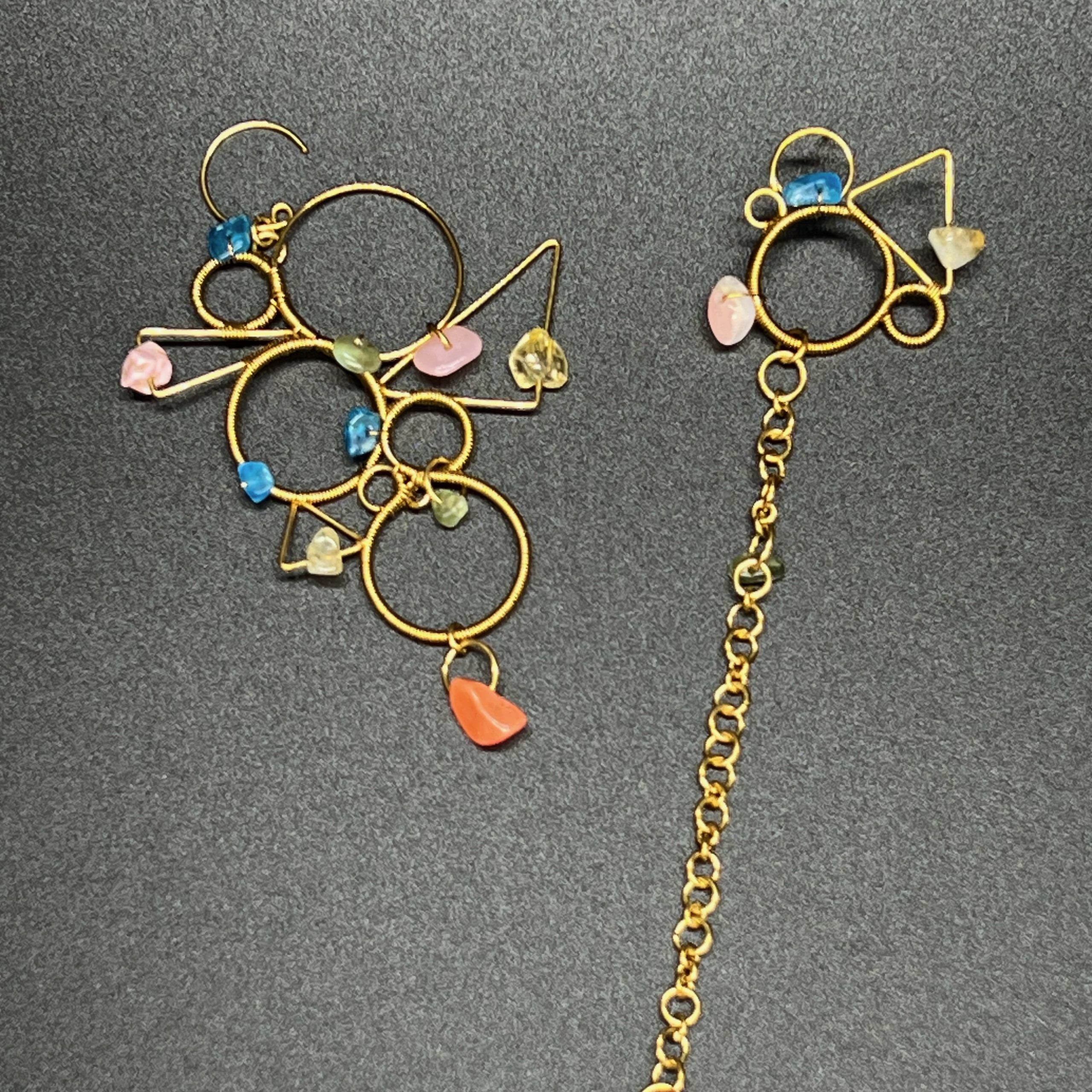 Asymmetric Earring to Pendant Set with Medley of Semi-precious Stones