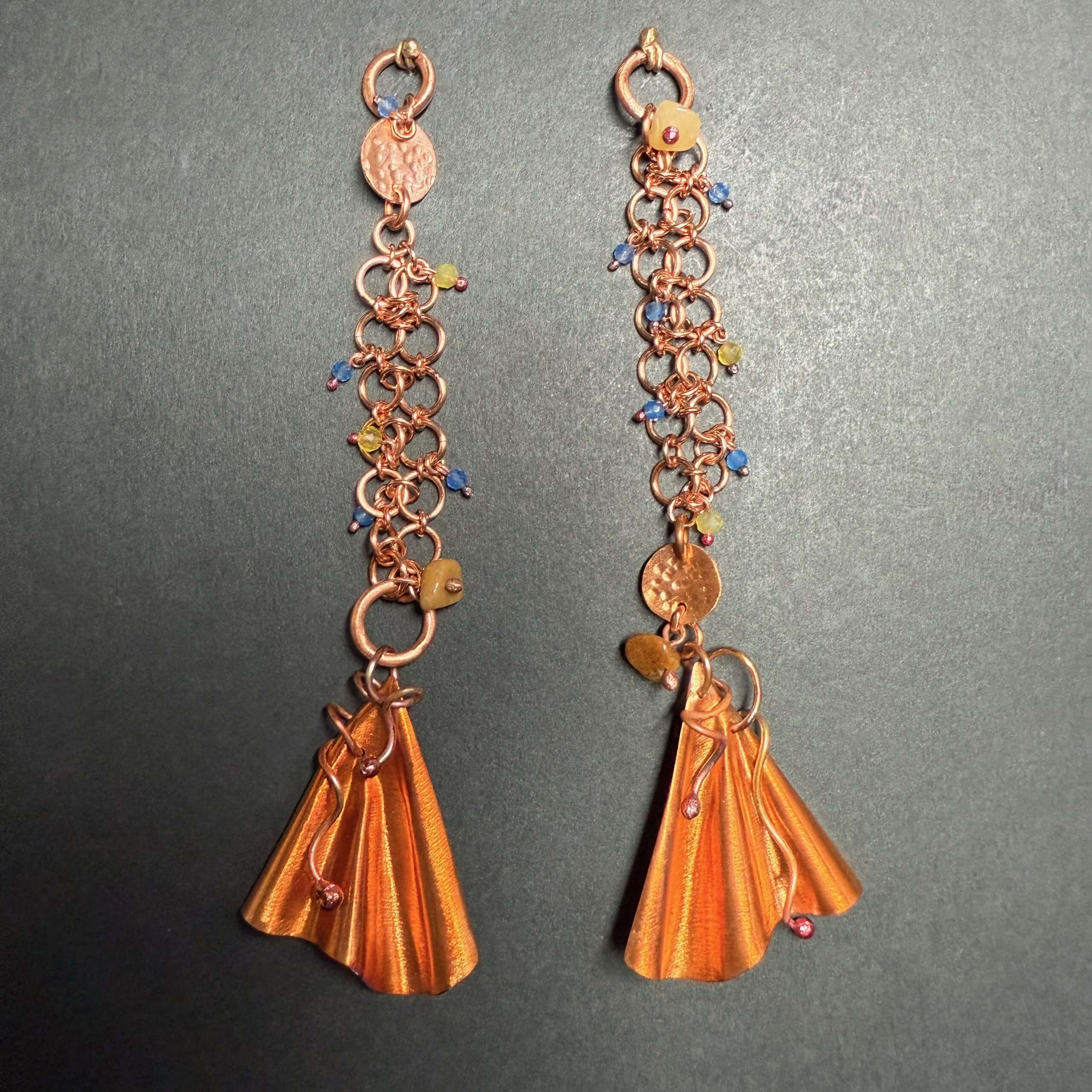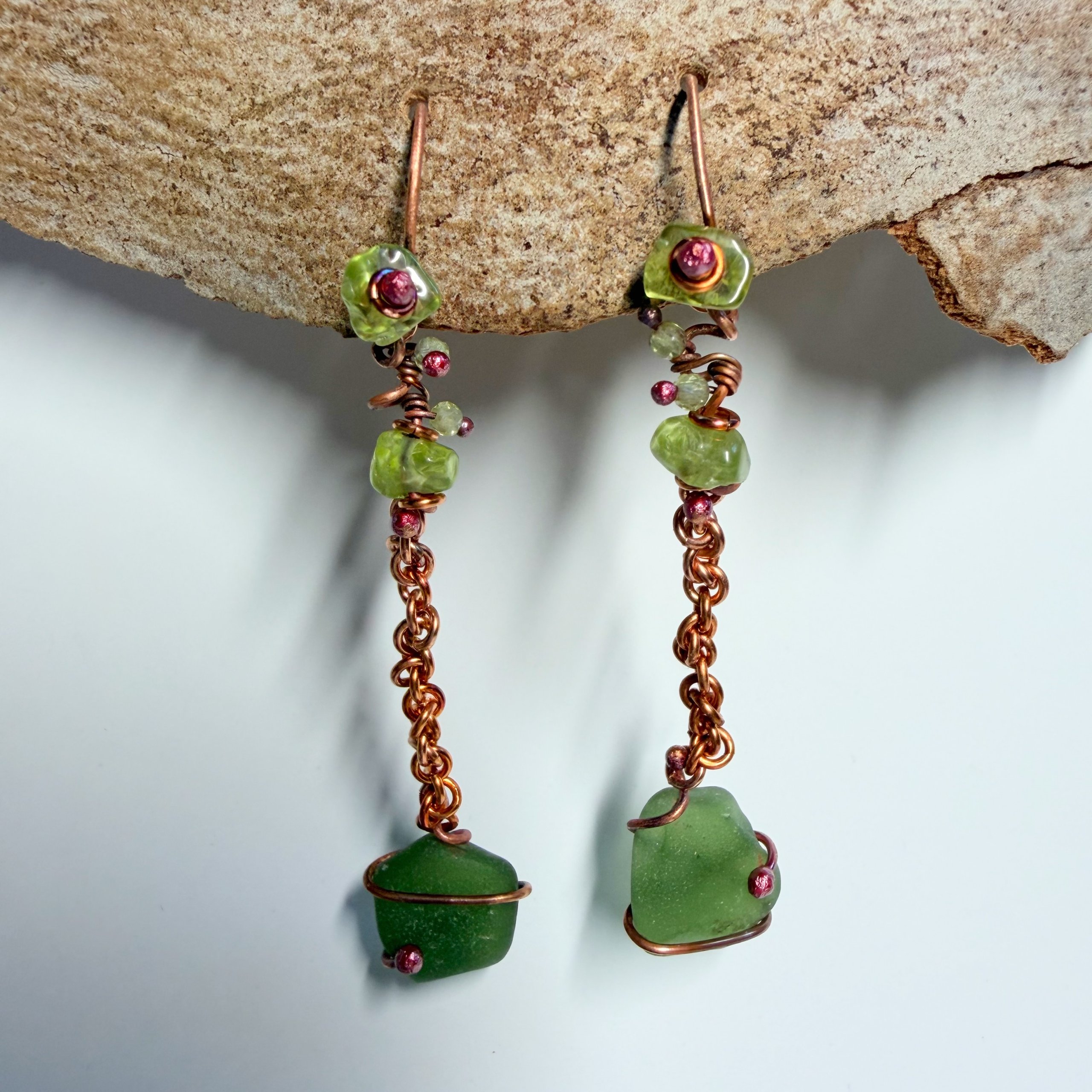 MY GEMS: Green Peridot, Cornelian, Gold-like Brass, Pure Copper