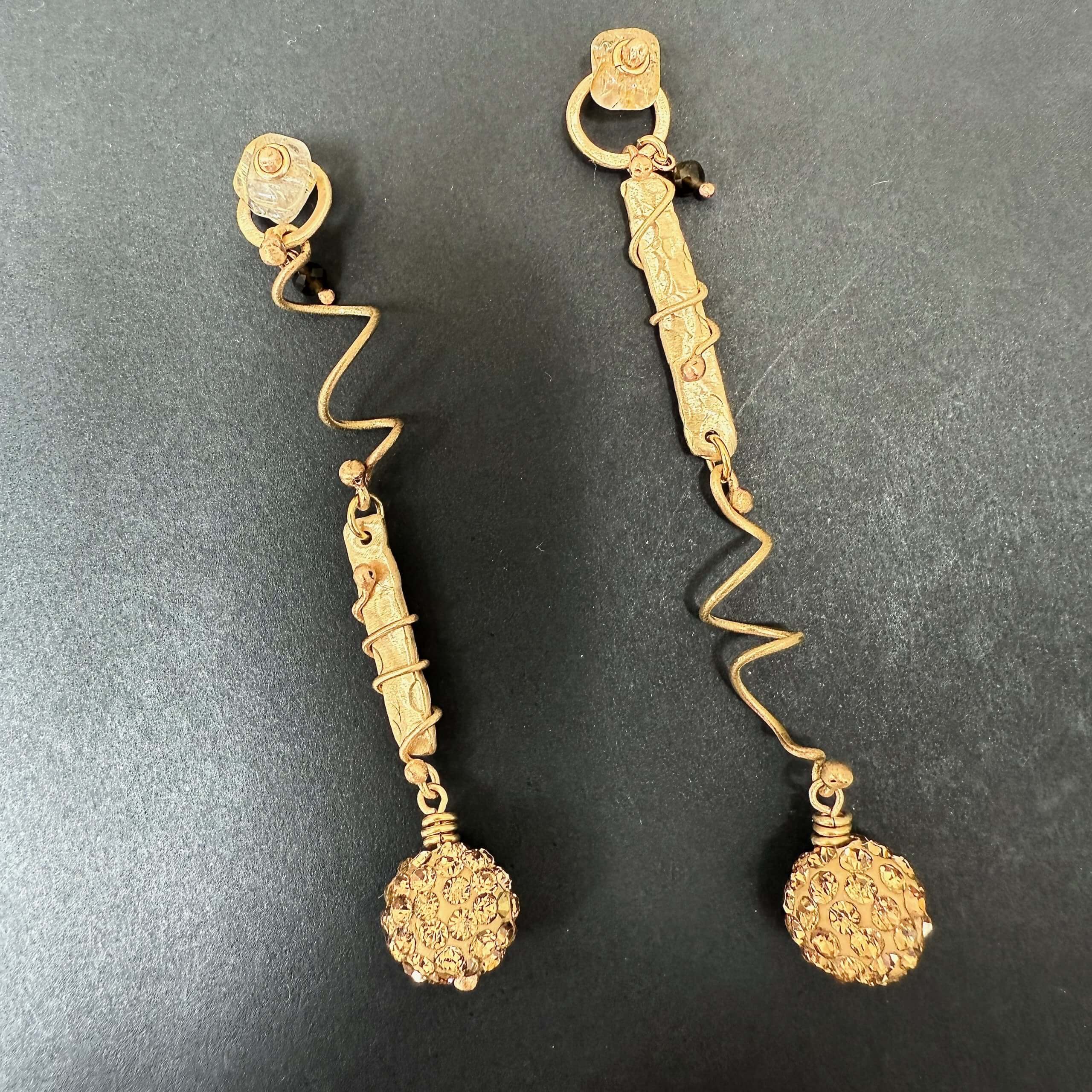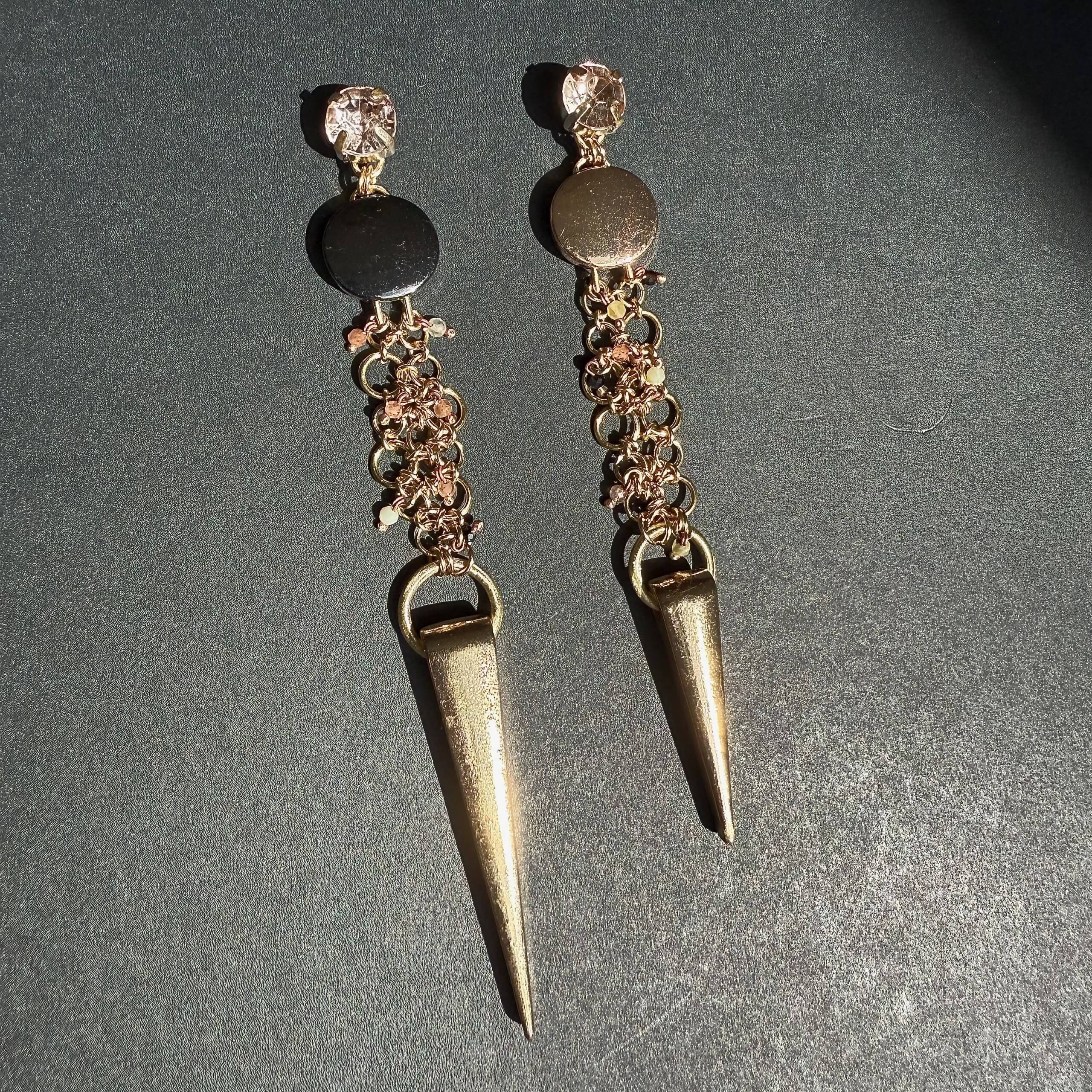 I paired them with molten-looking brass and glints of gold quartz and obsidian, so their sparkle wouldn’t be alone in its mischief. They’re asymmetric on purpose. Twisted just enough to remind you that straight lines rarely lead to wonder. Wear them when you want to defy the dress code — or when you’re already winning at being entirely, fabulously yourself.