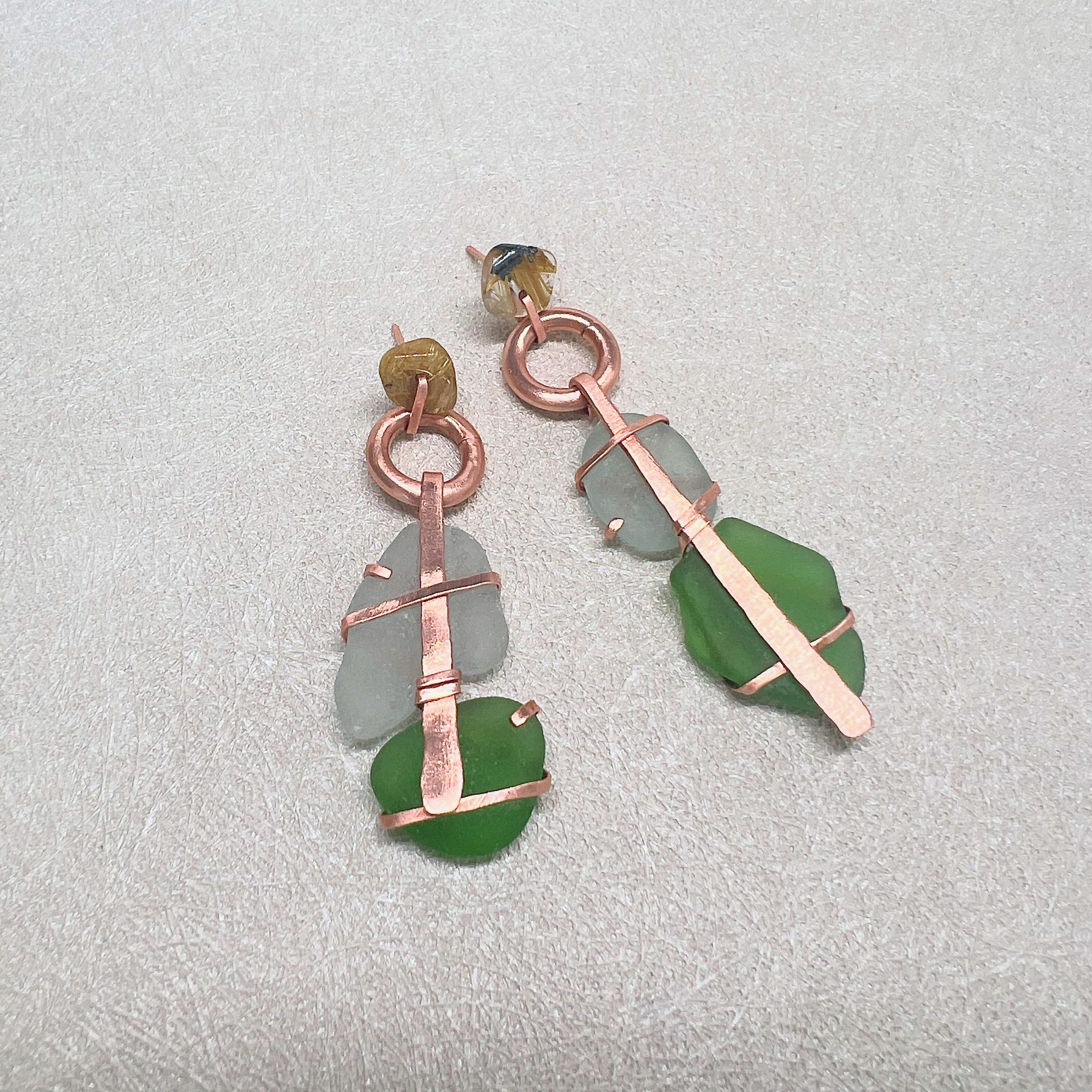 MY GEMS: Sea Glass from Gibraltar, Gold Quartz, Warm Copper.