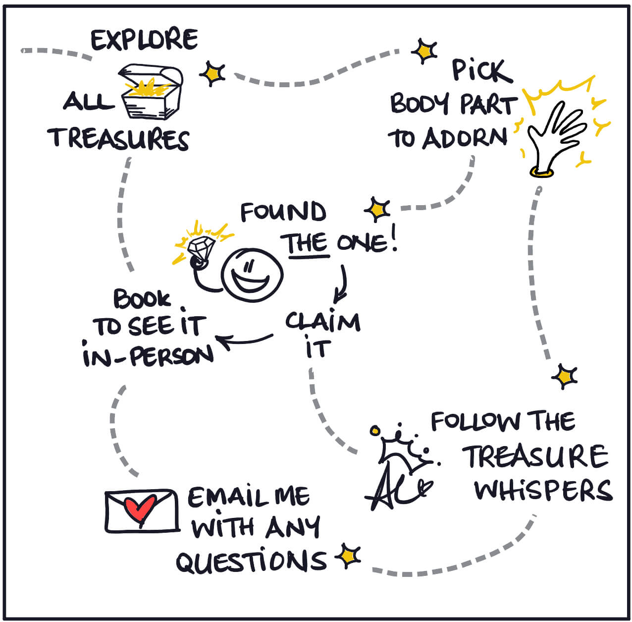 If you’d like to see and touch, and maybe even try on, before you make up your mind (and you’re local to Bath) you can make this treasure-hunt a lot more exciting by arranging an in-person jewellery session with me.