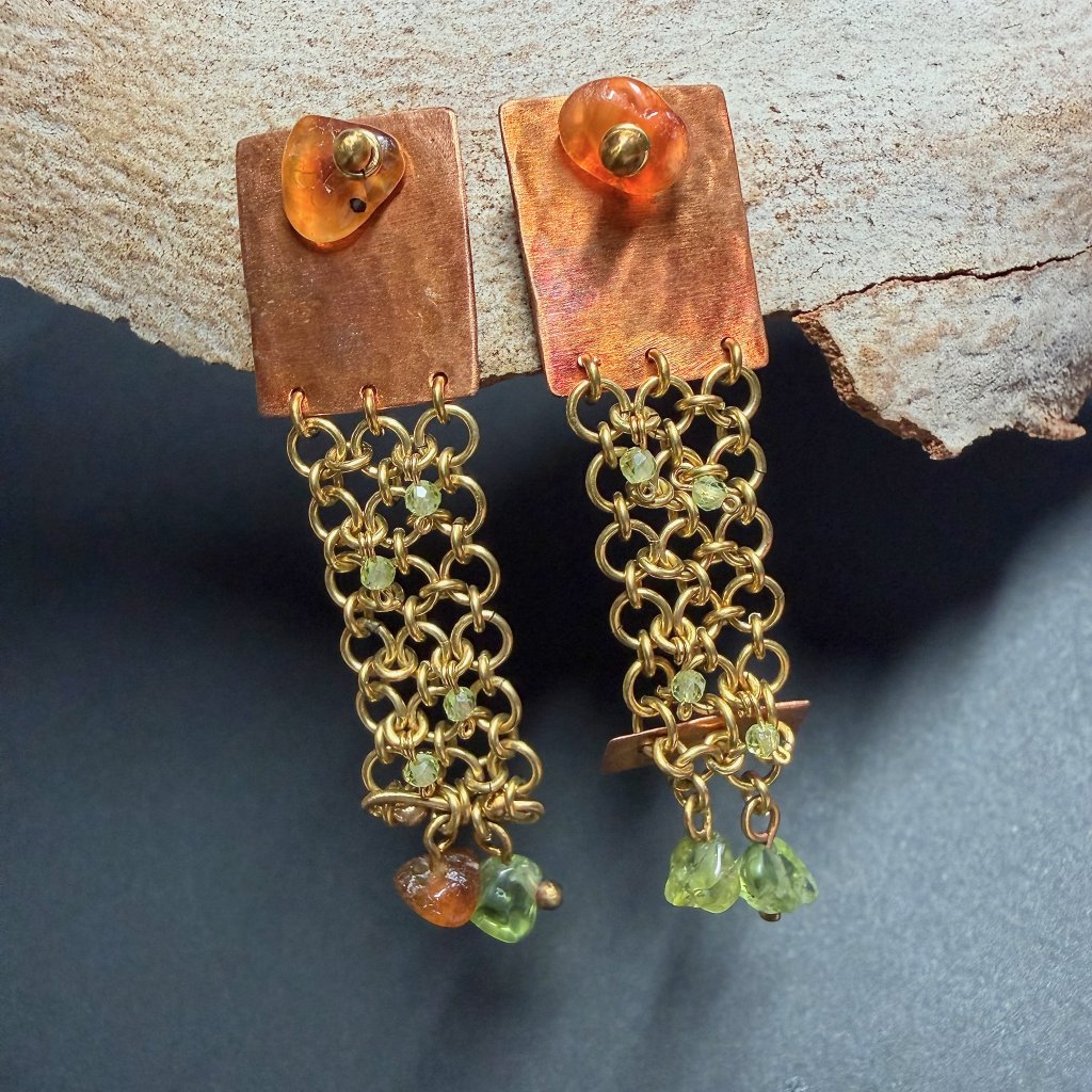 MY GEMS: Green Peridot, Cornelian, Gold-like Brass, Pure Copper