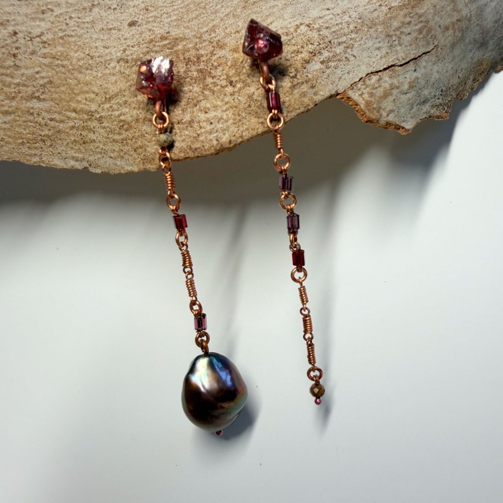MY GEMS: Raw Garnets, Peacock Pearl, Pietersite, Glass Beads, Pure Copper