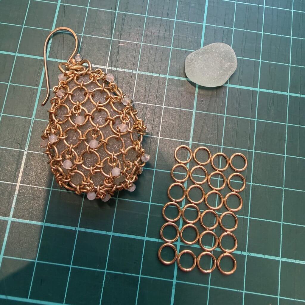 I threaded in tiny aquamarines — a nod to the power of water, and a natural continuation from the sea-glass itself. Water-born glass meeting a stone of the same element, yet rooted in earth — a little elemental mischief right there.